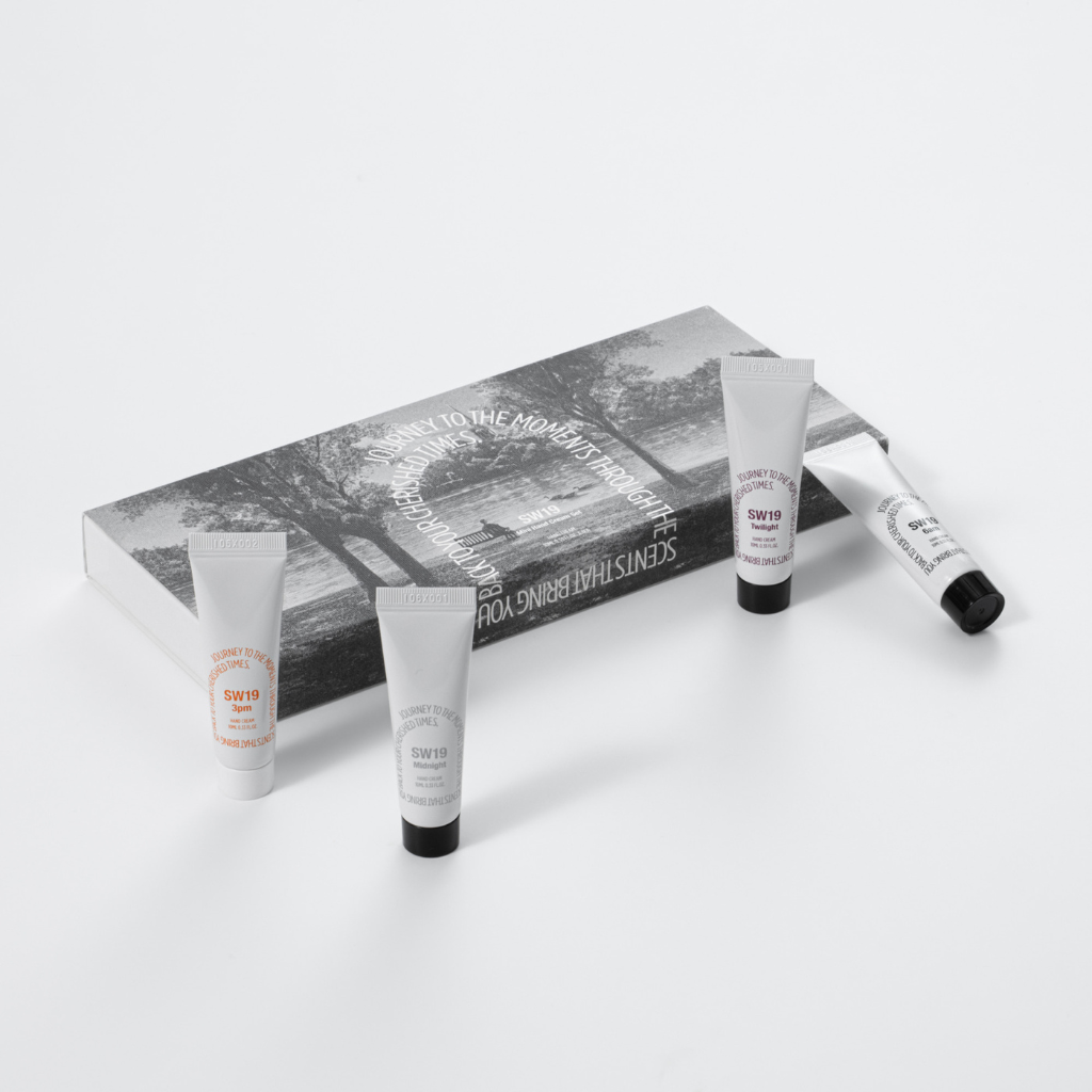 這款護手霜組包含SW19最受歡迎的四種香氛:清晨6點、下午3點、暮光和午夜。 SW19迷你護手霜質地清爽不黏膩,蘊含植物萃取成分,呵護肌膚健康。